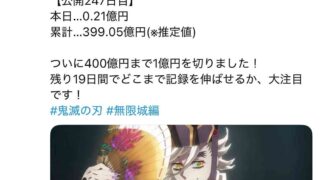 嫌儲 『鬼滅の刃 無限城編』、ついに興行収入399億になるwww