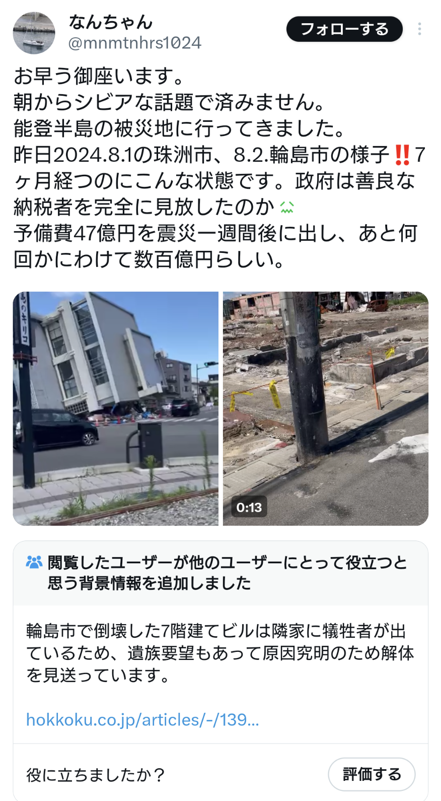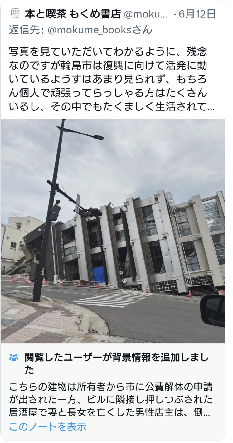 笑いながら写真撮って「行政は復興する気がないですね」とか「善良な納税者を敵にまわした」とかXにあげるってこと??