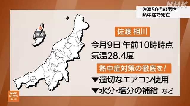 新潟 佐渡 帰省中の50代男性道路脇で死亡 熱中症と判明