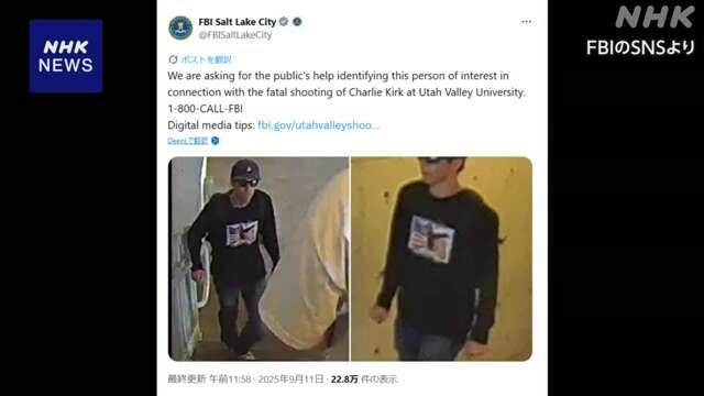 カーク氏銃撃 関わったとみられる人物の画像公開 米捜査当局