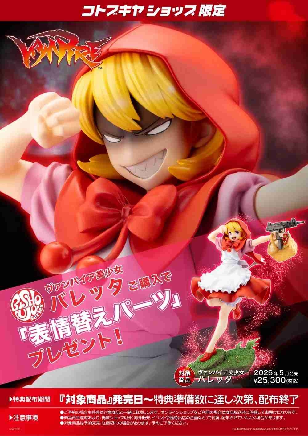 コトブキヤは、フィギュア「ヴァンパイア美少女 バレッタ」を2026年5月に発売する。価格は25,300円。