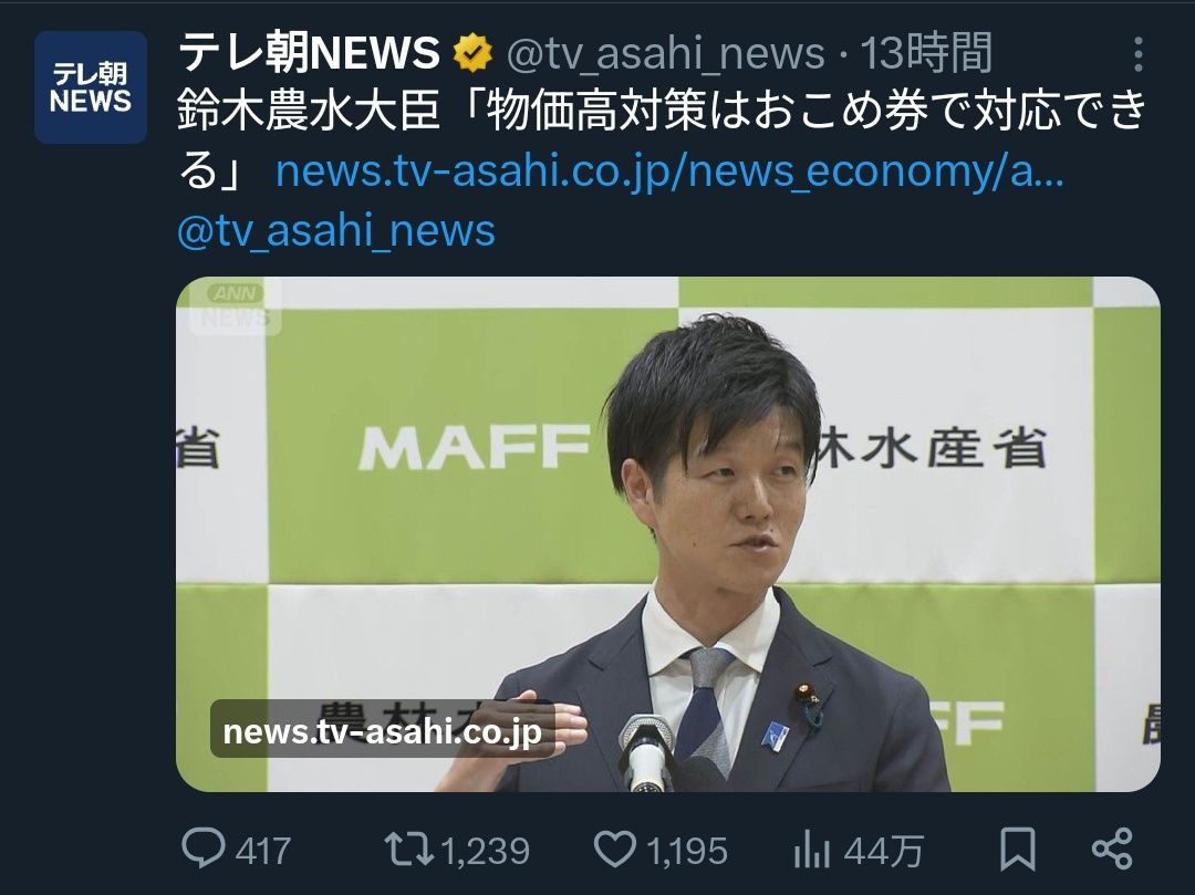 わざと価格高騰させて、お米券は税金から出すんだろ