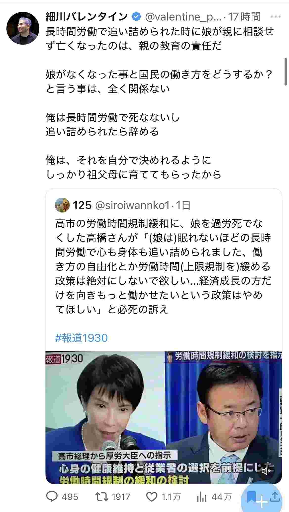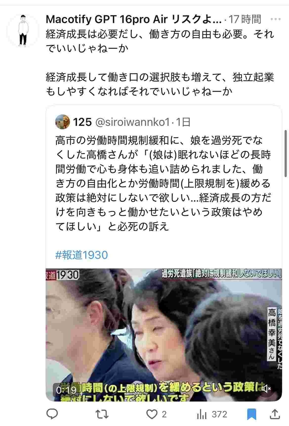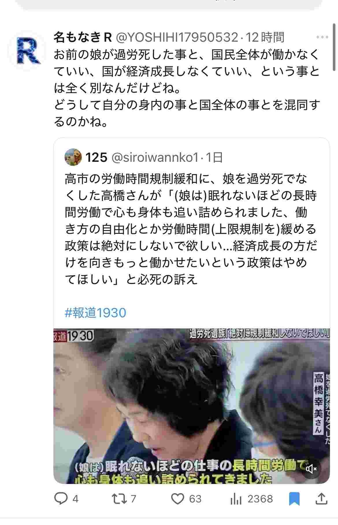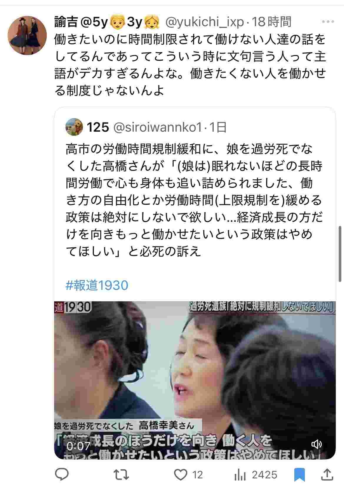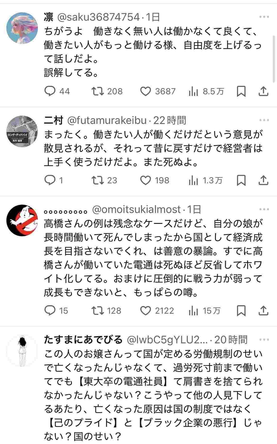 高市「馬車馬のように働け!24時間働け!死ぬまで働け!」