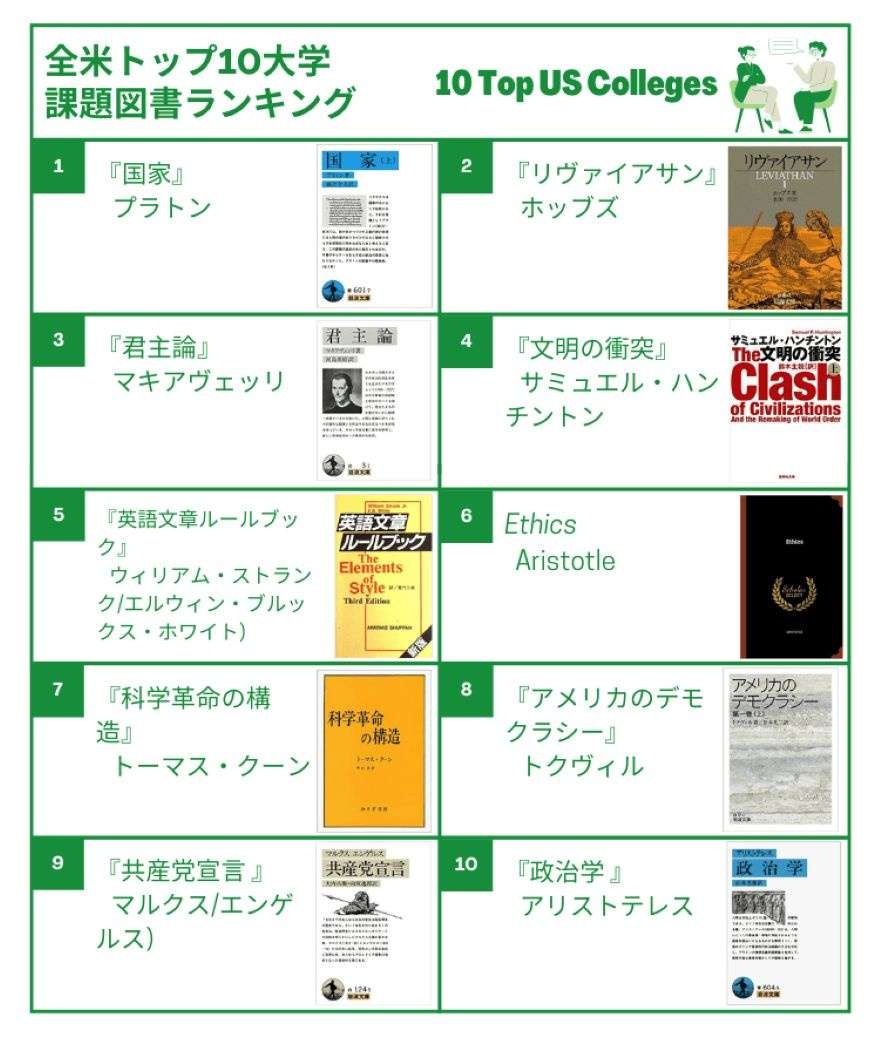 全米トップ10大学・課題図書ランキング
