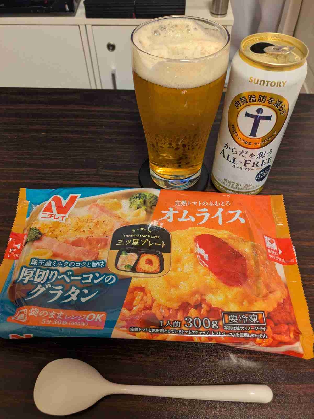 以前は一杯目は画像のオールフリーにしてたんだけど最近は500mlの一本50円くらいの炭酸水にしてる!