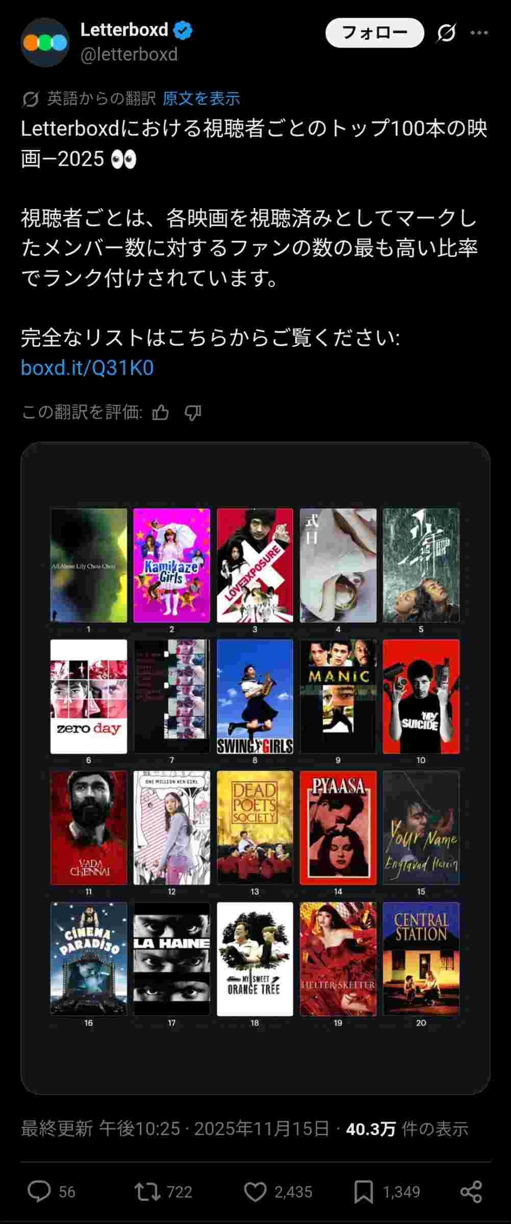 イラン映画とか一位にしたらなんか通っぽいじゃんってそういうノリでしょ😼