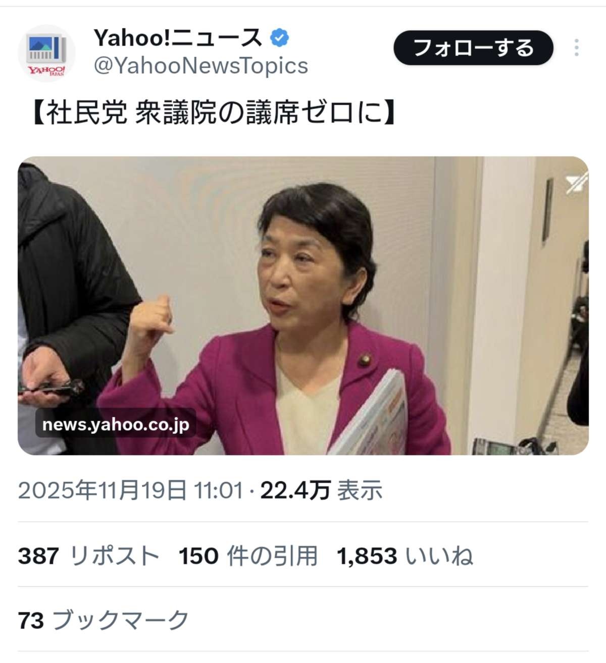 【高市緊急速報】嫌儲が愛した社民党さん、「議席ゼロ」になってしまう🥺www