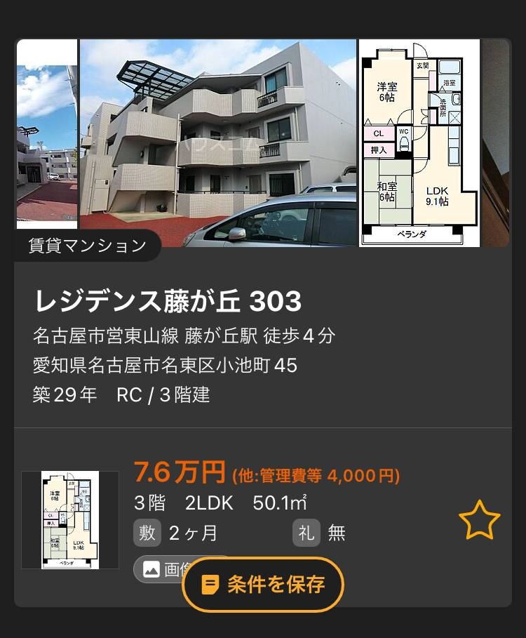 例えば名古屋の主要路線・東山線の沿線で徒歩5分以内の築浅でも6万あれば1LDKなど広い家に住める