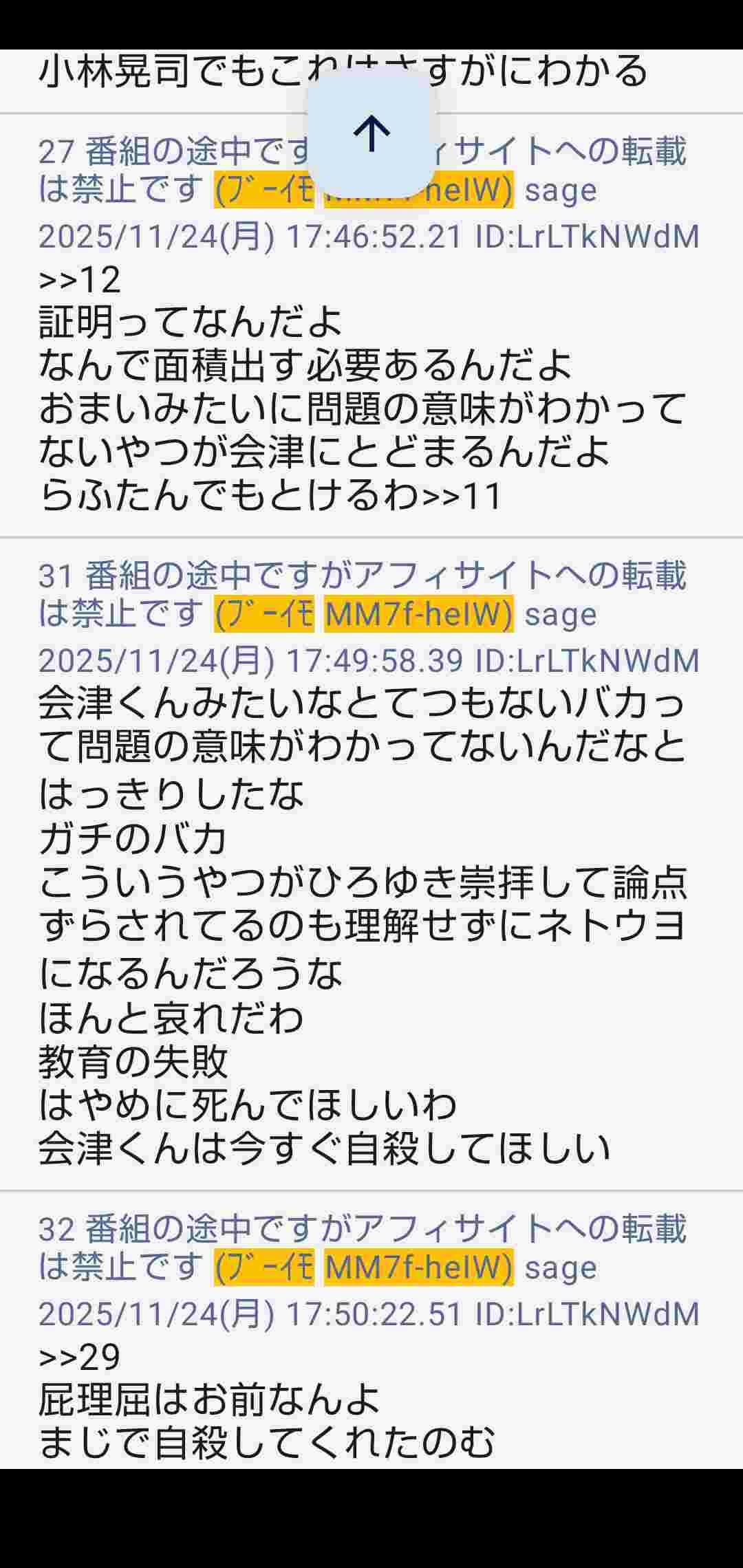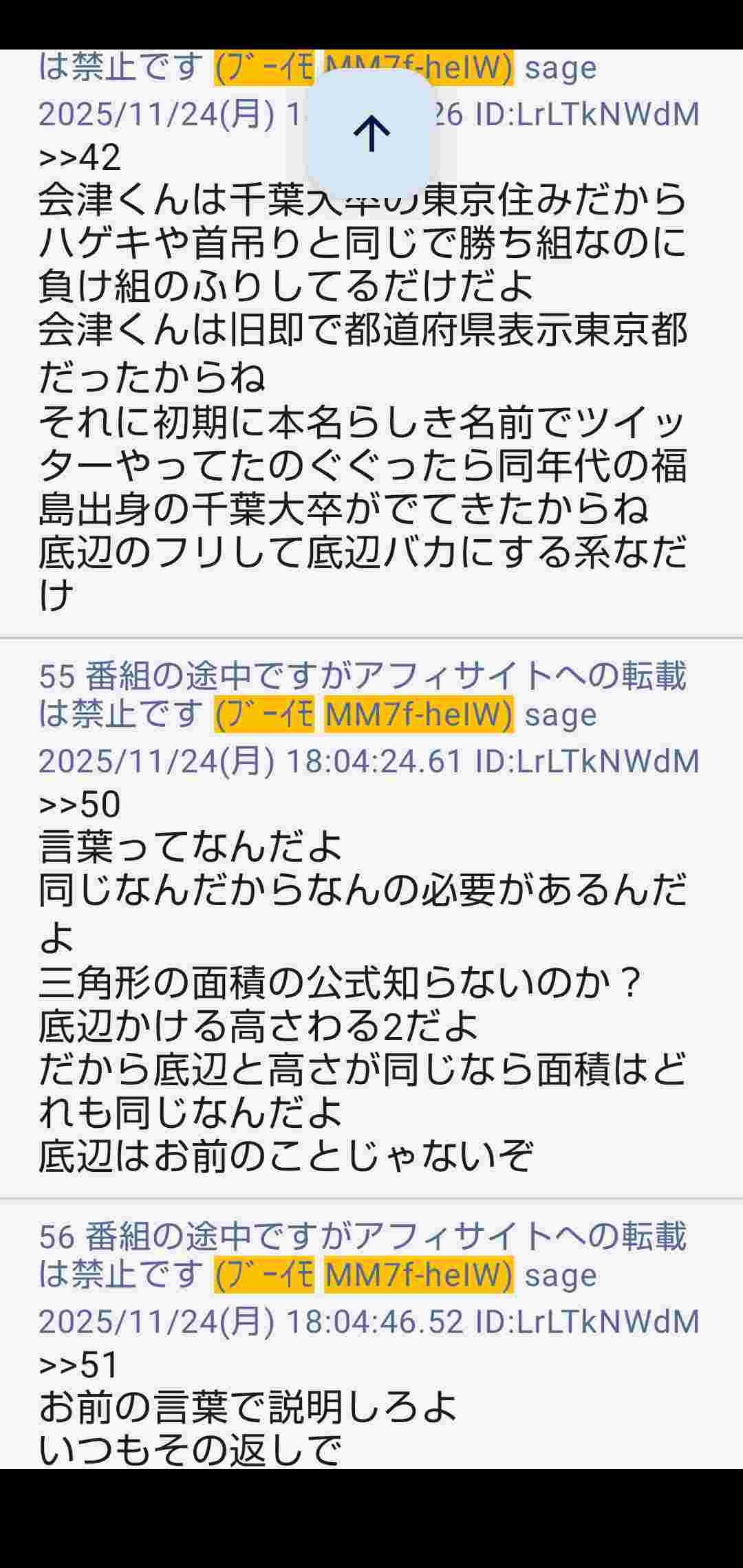 俺の必死の訴えを、こいつは嘘ついてるだけだとか、本当は会津に住んでないとか千葉大卒とか
