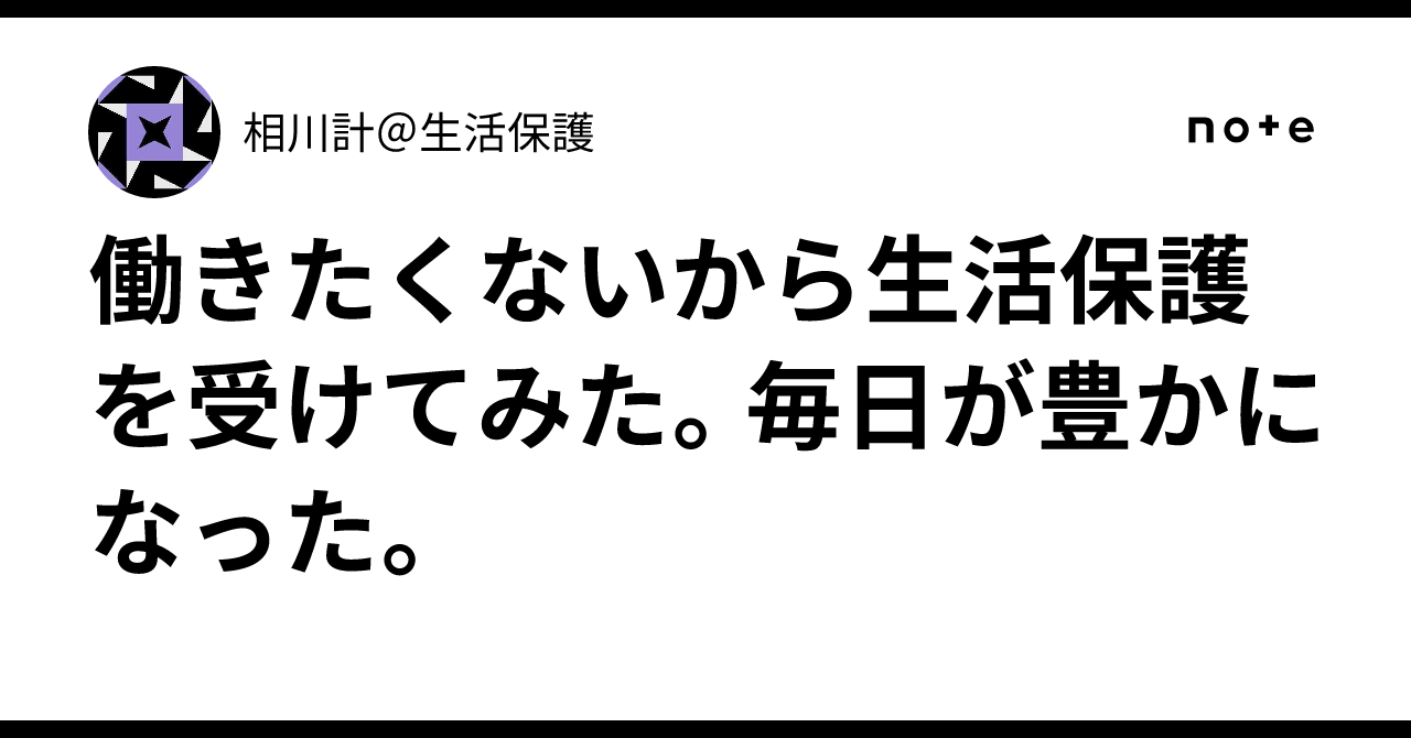働きたくないから生活保護を受けてみた。毎日が豊かになった。|相川計@生活保護借金の取り立てを無視していたら電報が来た。最後に支払いを約束した日から5年経つと時効が来るらしいので「来月には払います」の一言を取ろうとあちらも必死である。まあ、受け取り拒否したので向こうの企みは失敗したのだけれども。 私が「受給理由:思想...note.com