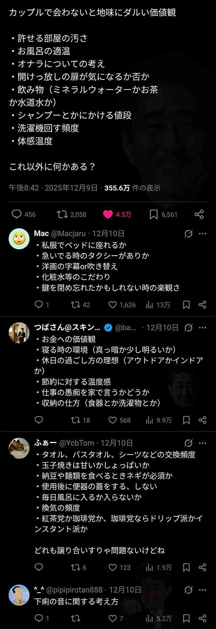 その他は個人で許容するしないだから同棲してる間に判断すれば済む話だよ