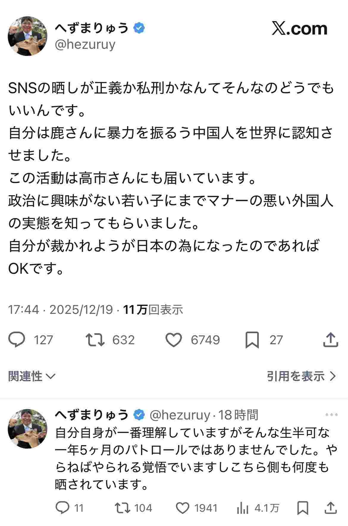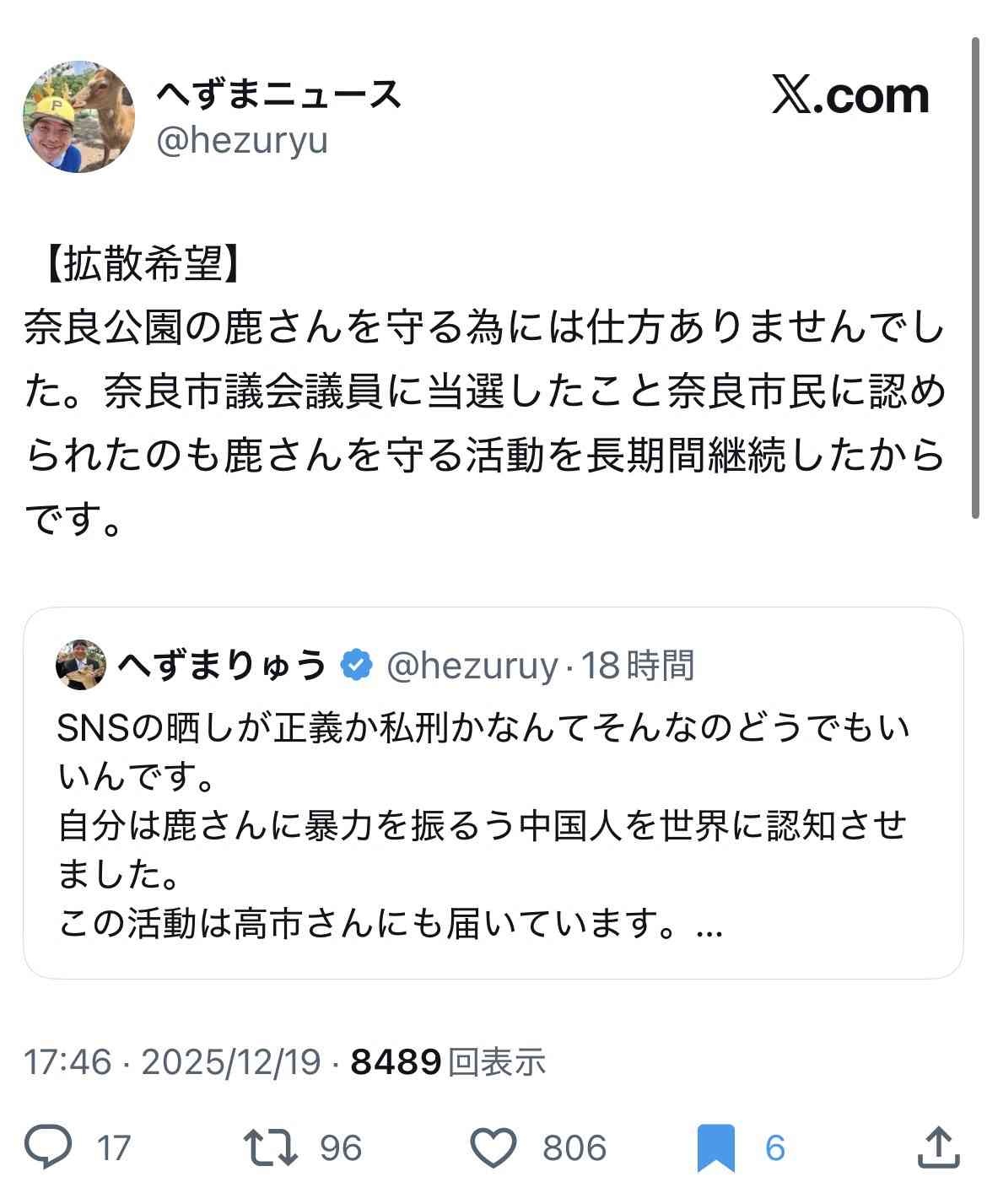 鹿に自分のうんこ食べさせてたお前がいうんか