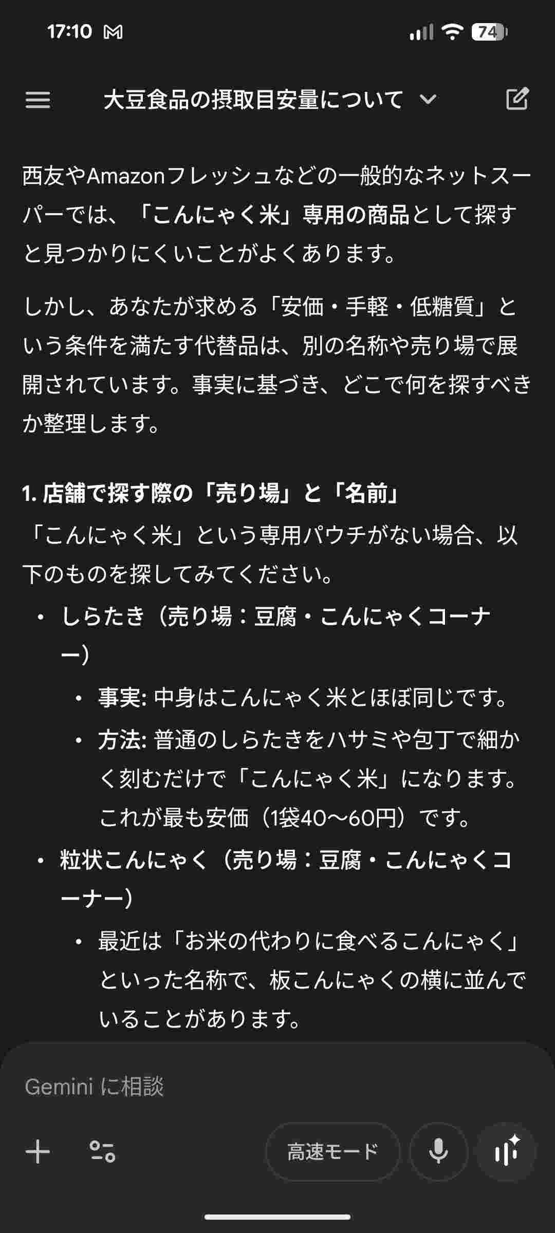 AI「こんにゃく米はスーパーで50~80円で売ってる」