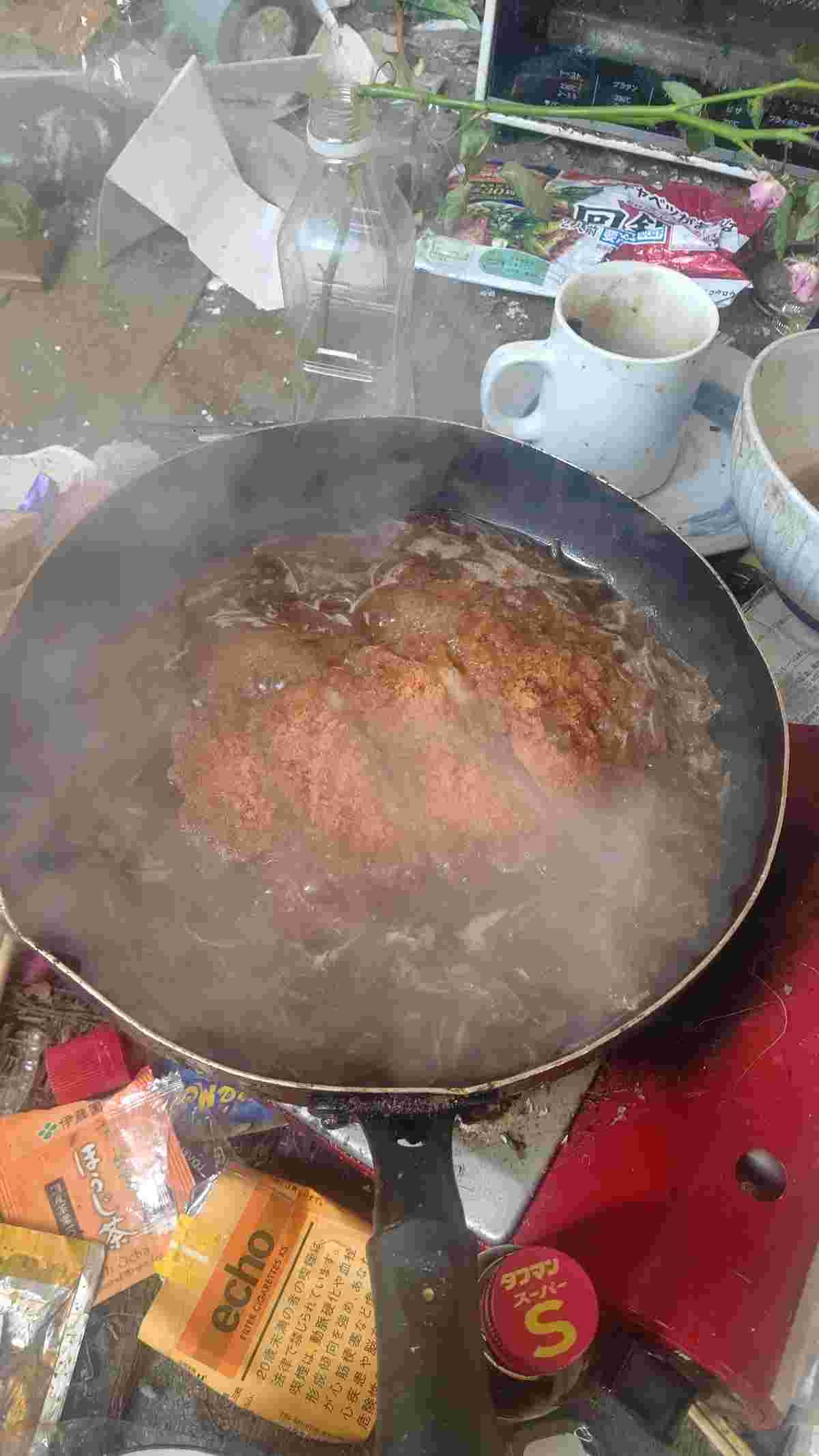 かつは揚げずに買ってきたほうが楽だよな。あとカツ用の鍋売ってるからそれでやればいいよ