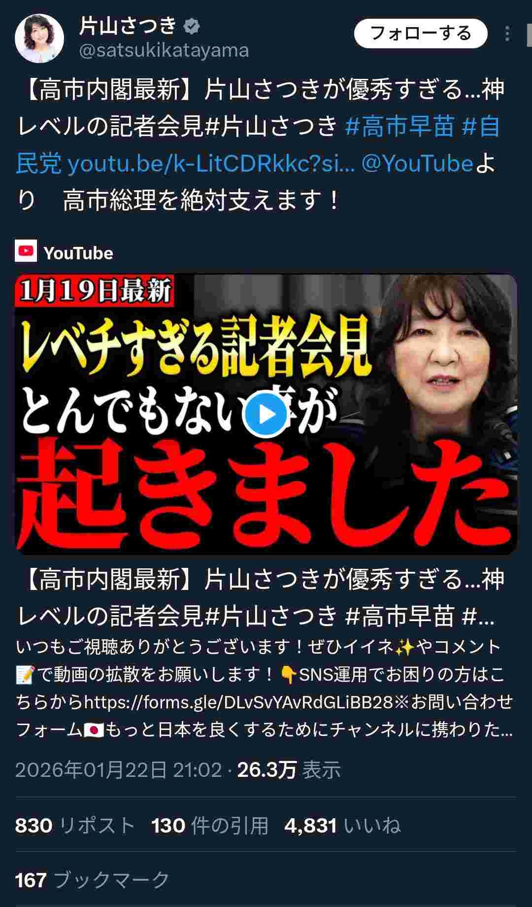 片山さつきに取り上げてもらえば再生回って金になるから増えるなこれ