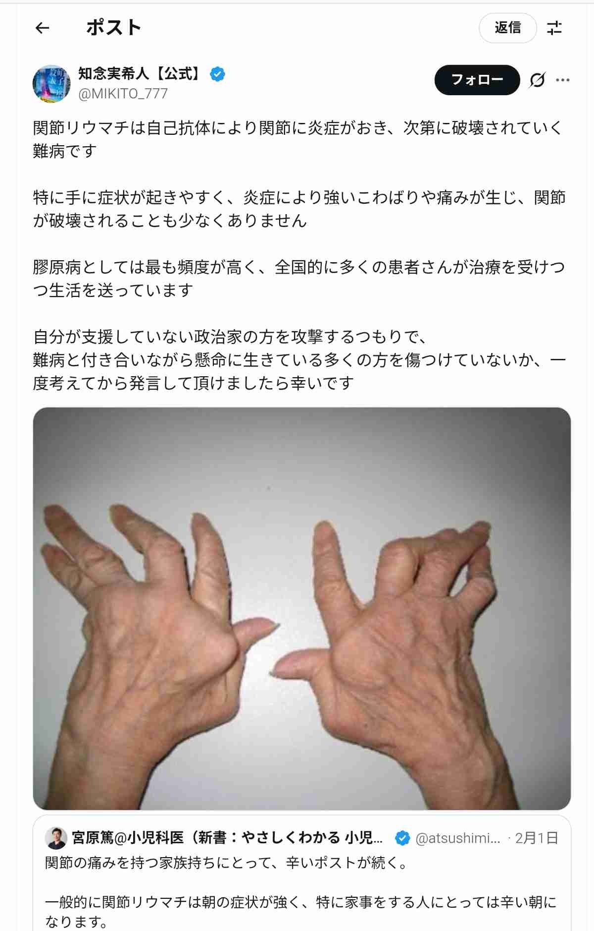 政治家ひいては人としての振舞いが攻撃されてるのにリウマチ患者がカカシとして登場する人多いけど、大丈夫なん