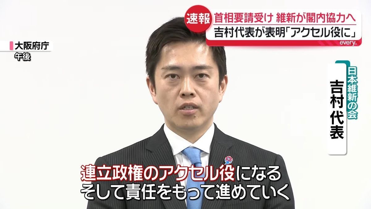 吉村代表「連立政権のアクセル役に」維新が閣内協力へ 高市首相が要請