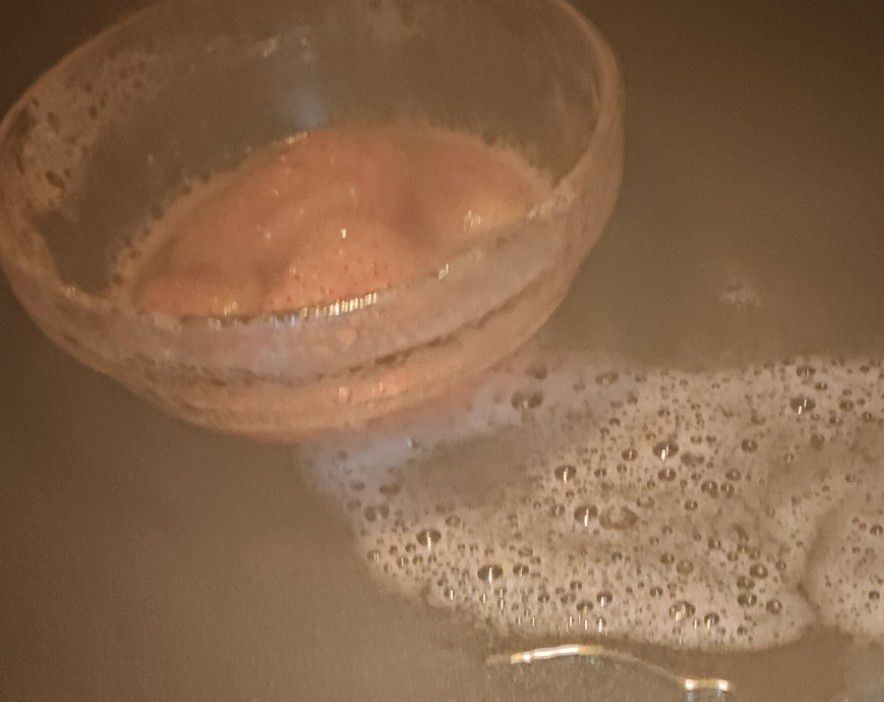 鍋に着いたシロップ勿体ないからいちご風味プリンにしようかな
