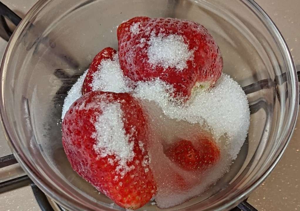 冷凍したいちごレンチンしようと思ったら今生地焼いてるの忘れてた