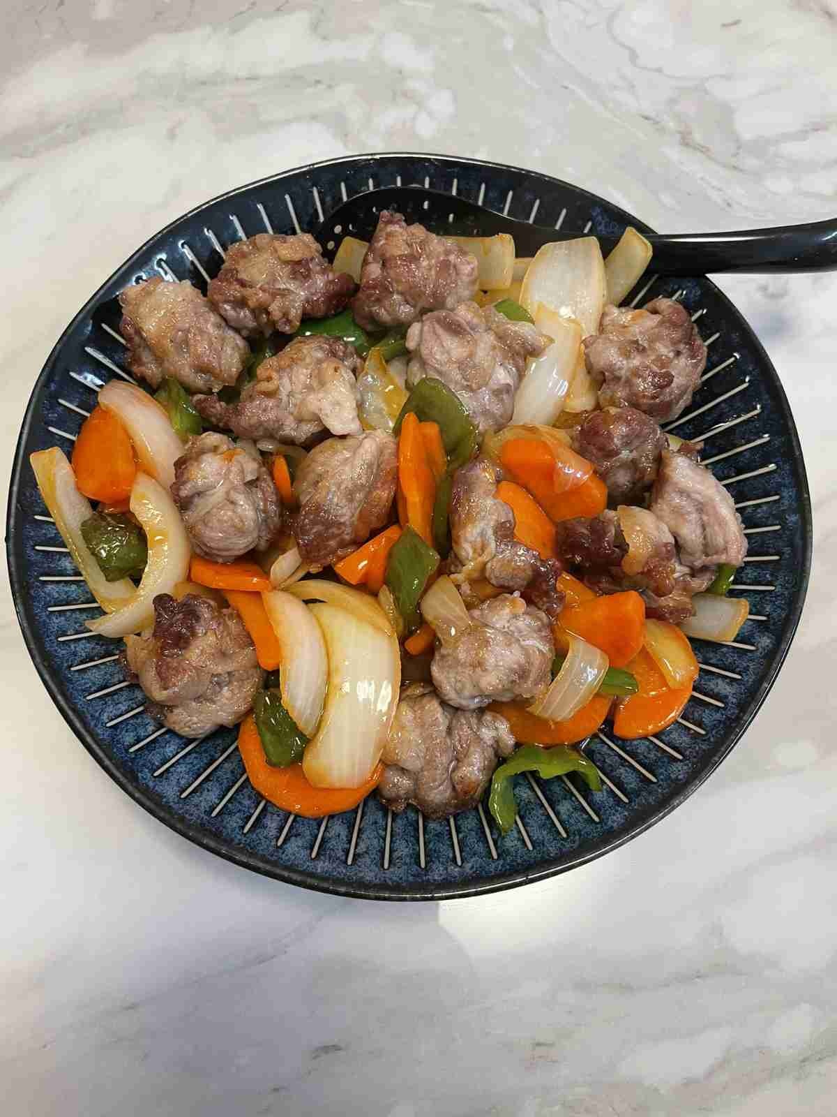 酢豚の肉はトンカツみたいに1回油で揚げて