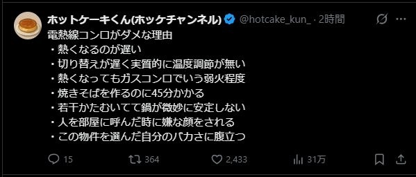 このコンロの所に短期間住んだ事あるけど悲惨だった