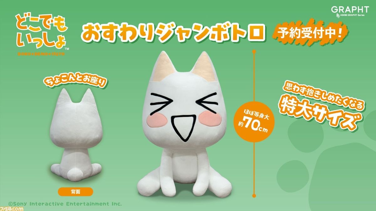「どこでもいっしょ」ほぼ等身大ぬいぐるみ「おすわりジャンボトロ」取り扱い決定 3月23日よりGRAPHT公式ECで予約販売、東京ソラマチ でサンプル展示も開始