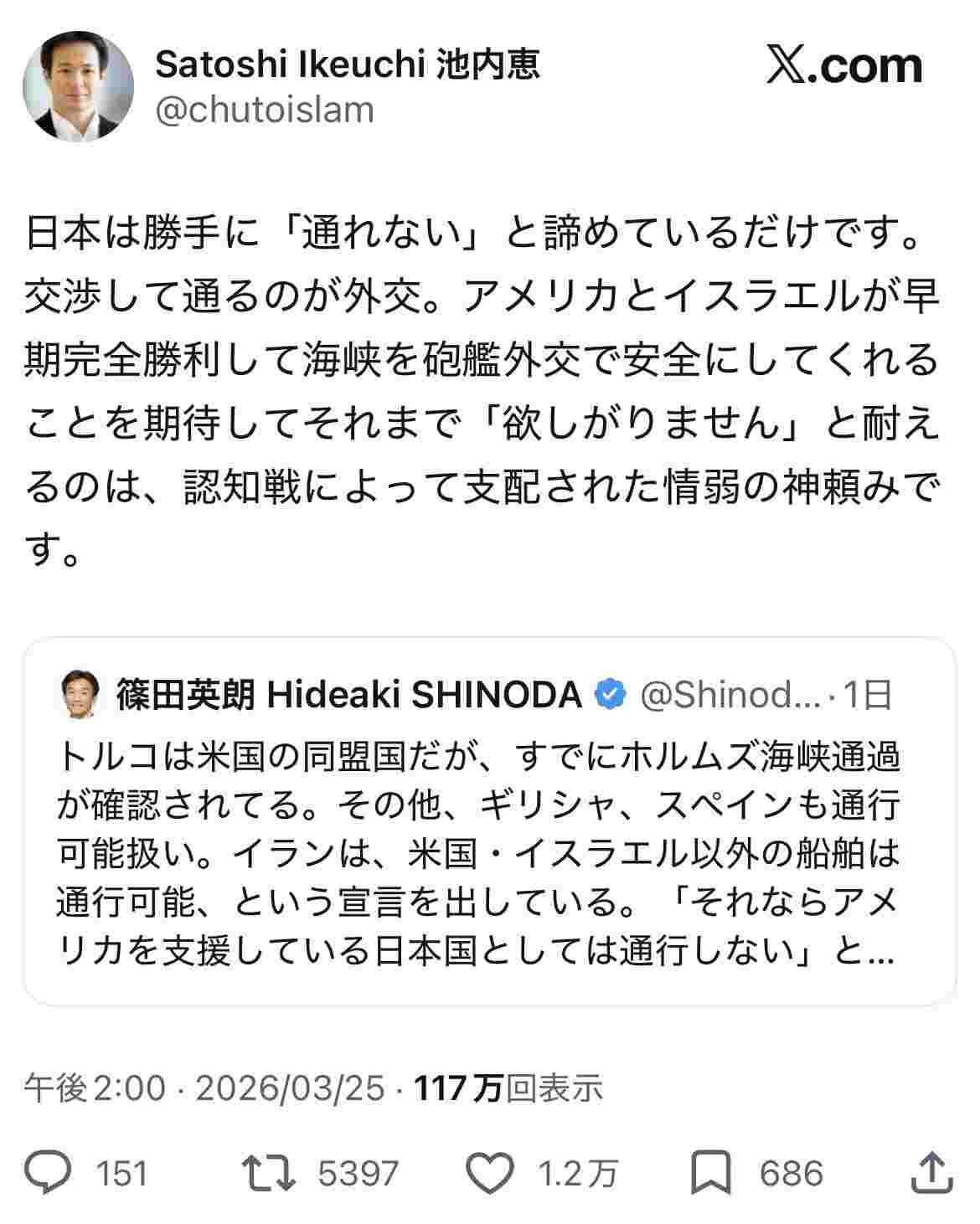 池内さんはイスラム国掃討戦の頃は従米ネトウヨから重宝されてたのに