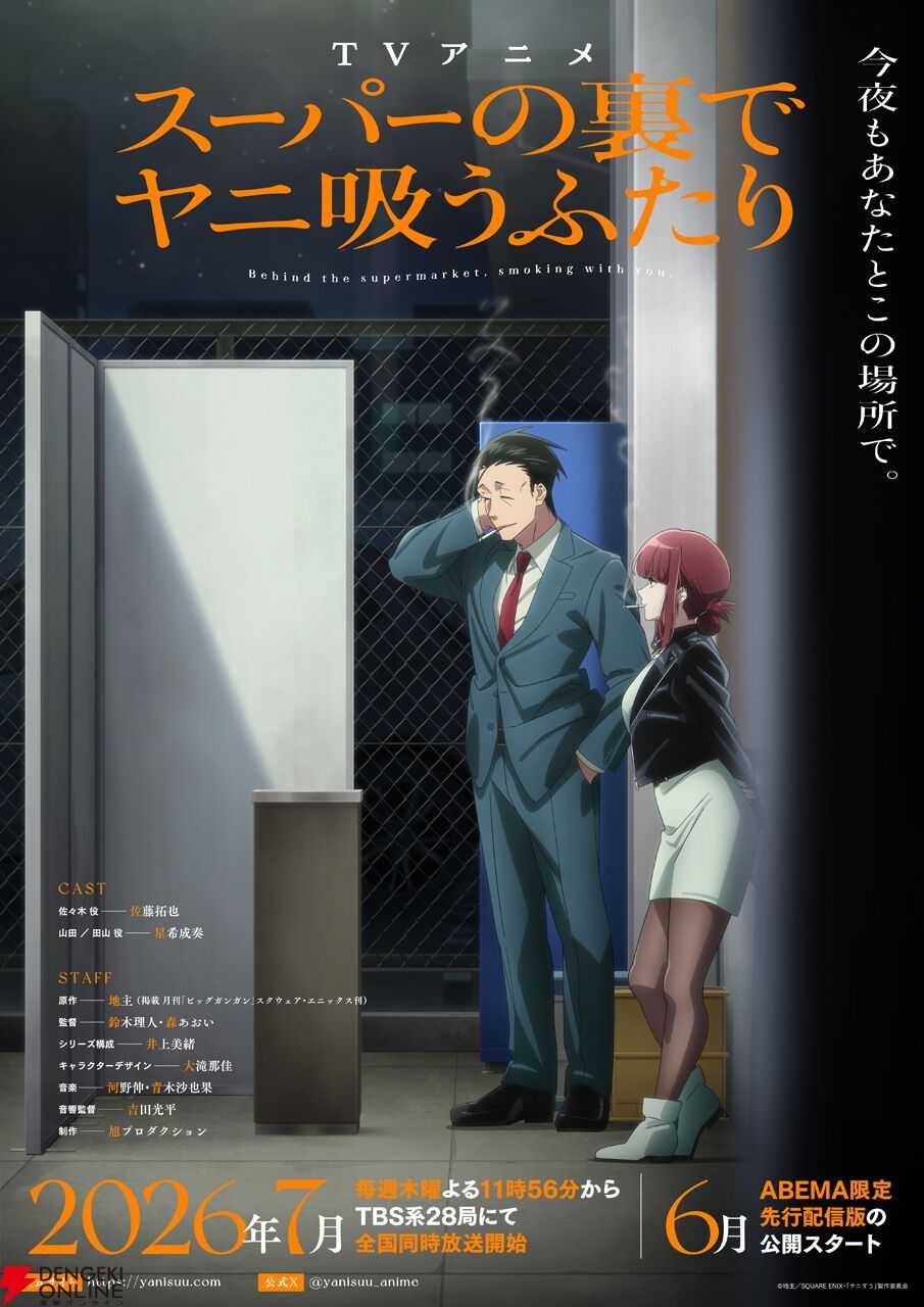 アニメ『スーパーの裏でヤニ吸うふたり』のメインキービジュアルとPV第1弾が解禁。OPテーマをずとまよ、EDテーマをimaseが担当