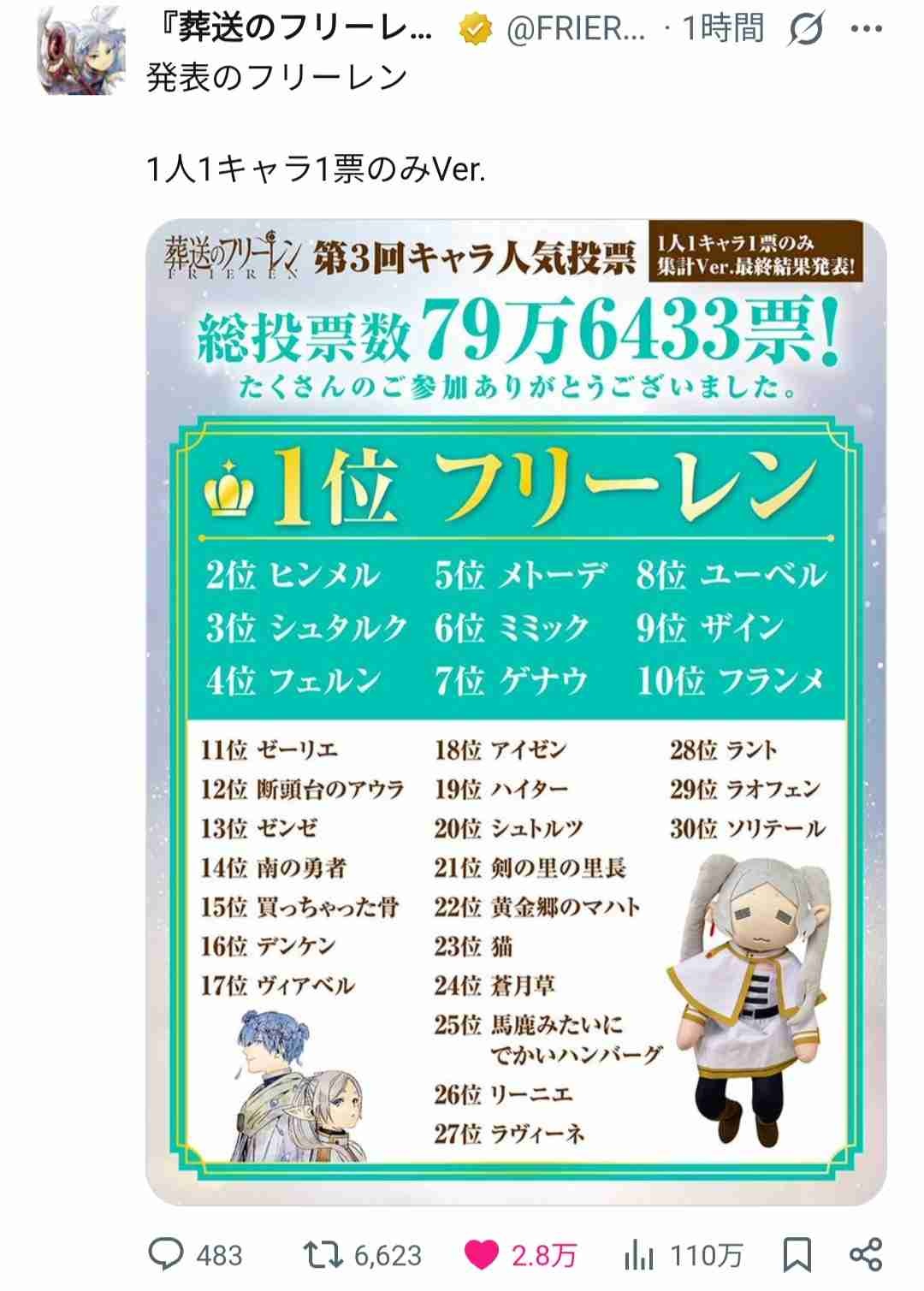 ちなみにフリーレンが1位