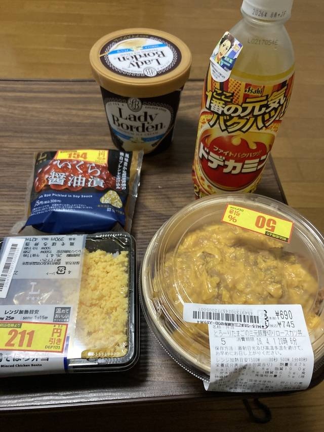カツ丼は早めの晩飯、おにぎりは夜食、そぼろは朝食ならまあ、、、
