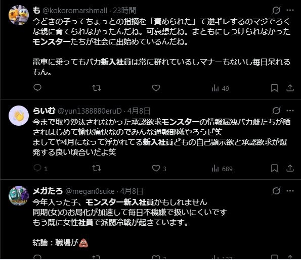 SNSでは「モンスター新人」の話題で持ちきりのこの季節、なぜか嫌儲でその話題が全くない理由ってお前ら自身がモンスターだからなの??