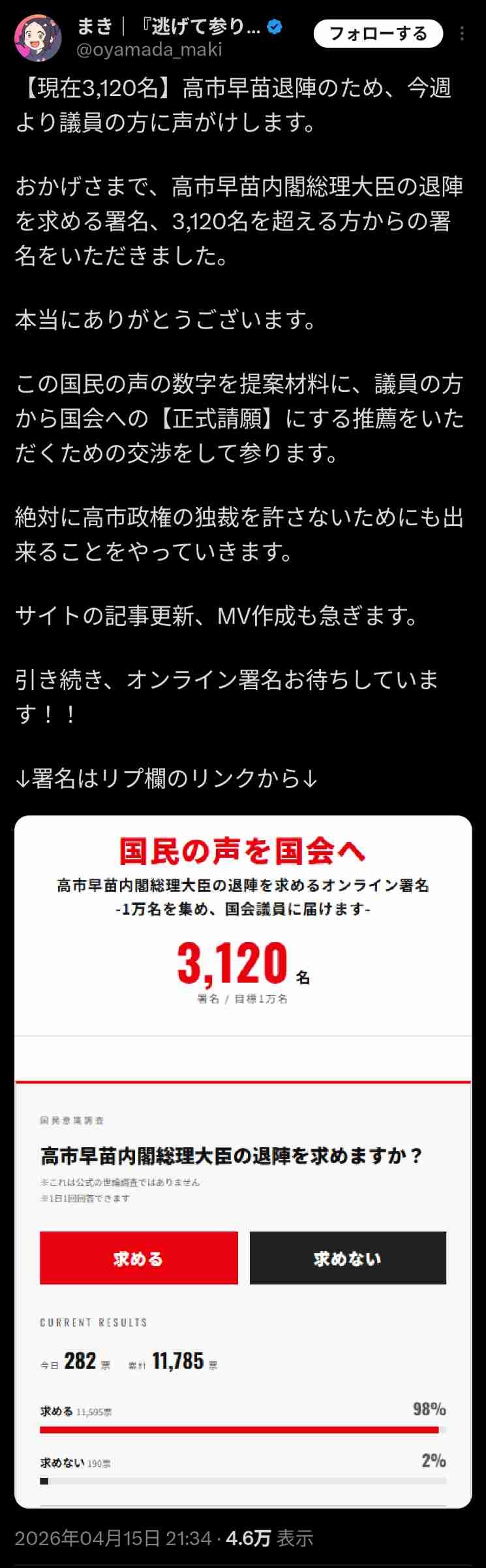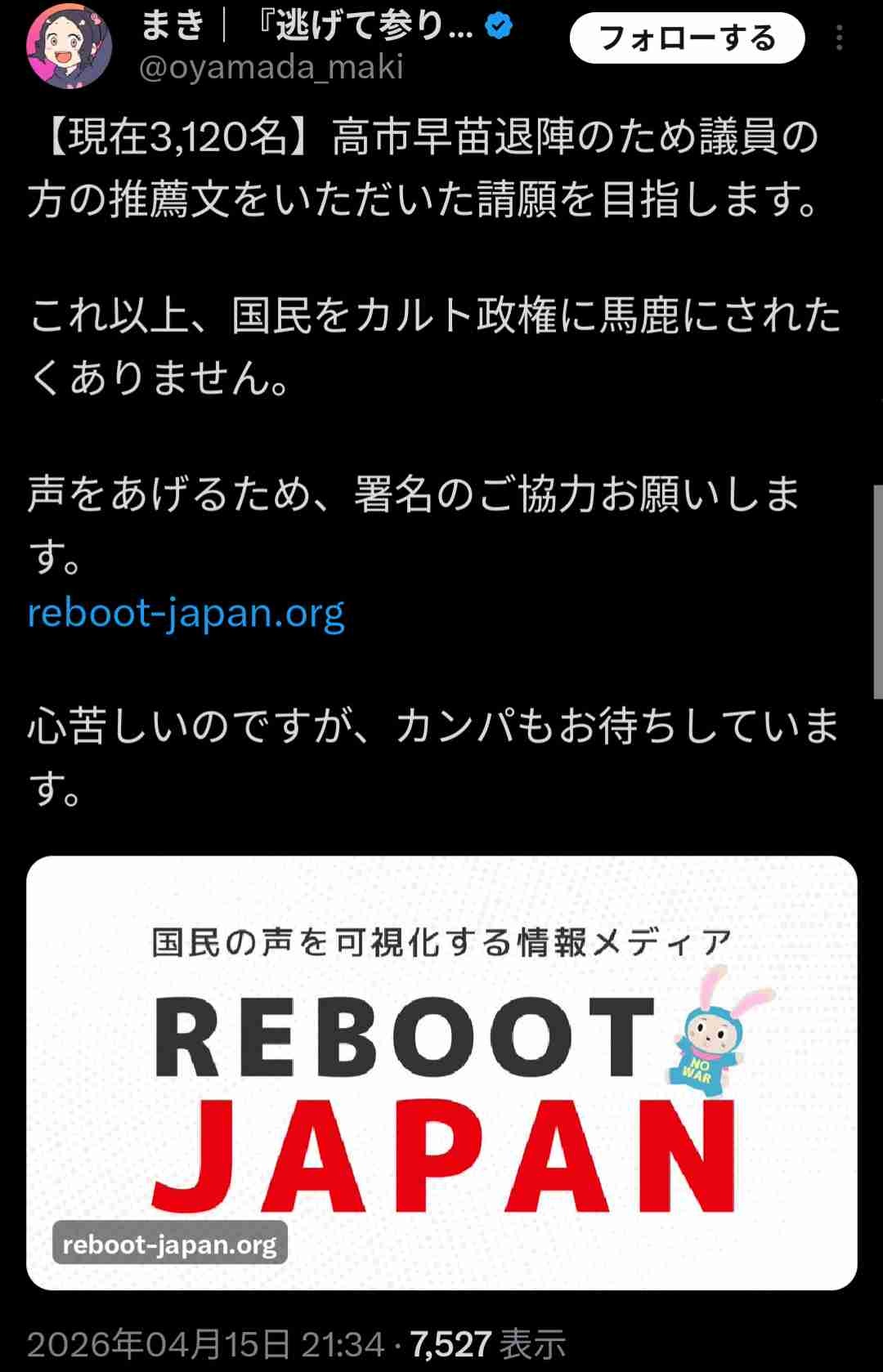 首相退陣署名なんて今の独裁自民には意味ないんじゃね