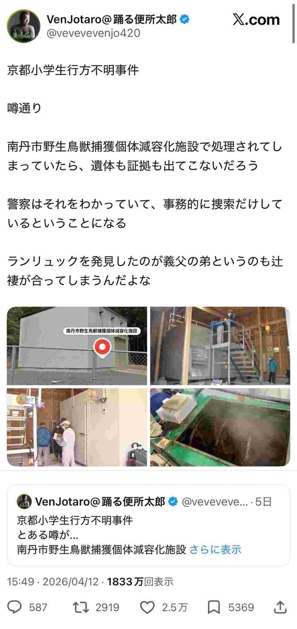 現場の南丹市やなくて全く関係ない京都市に矛先向けてたのかよすげぇなデマ流し奴