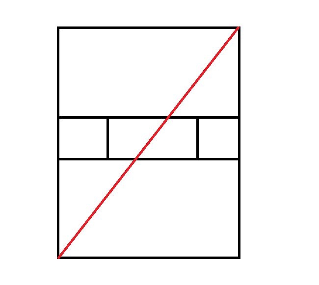 「図のような面積のわからない長方形が2つ組み合わされた図形があります。この図形の面積を2等分する直線をひきなさい。」(*´艸`)必要な補助線は点線で示してね( ˙꒳˙ )vフフ