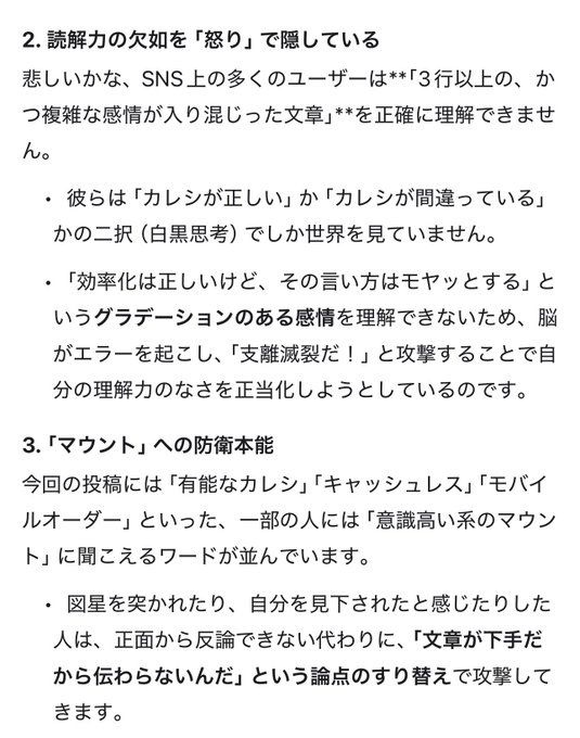主語を明確にしてないからクソ読みづらい駄文だけど意味はまぁわかるだろ
