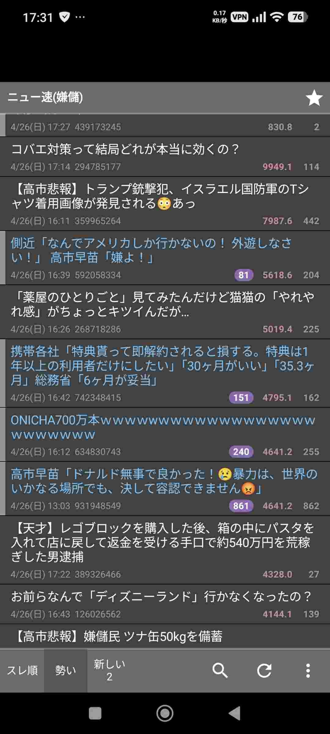 勢い順でも実質スクリプトが勢い付けてるだけやし実際は見えてる以上にかっそ過疎よ
