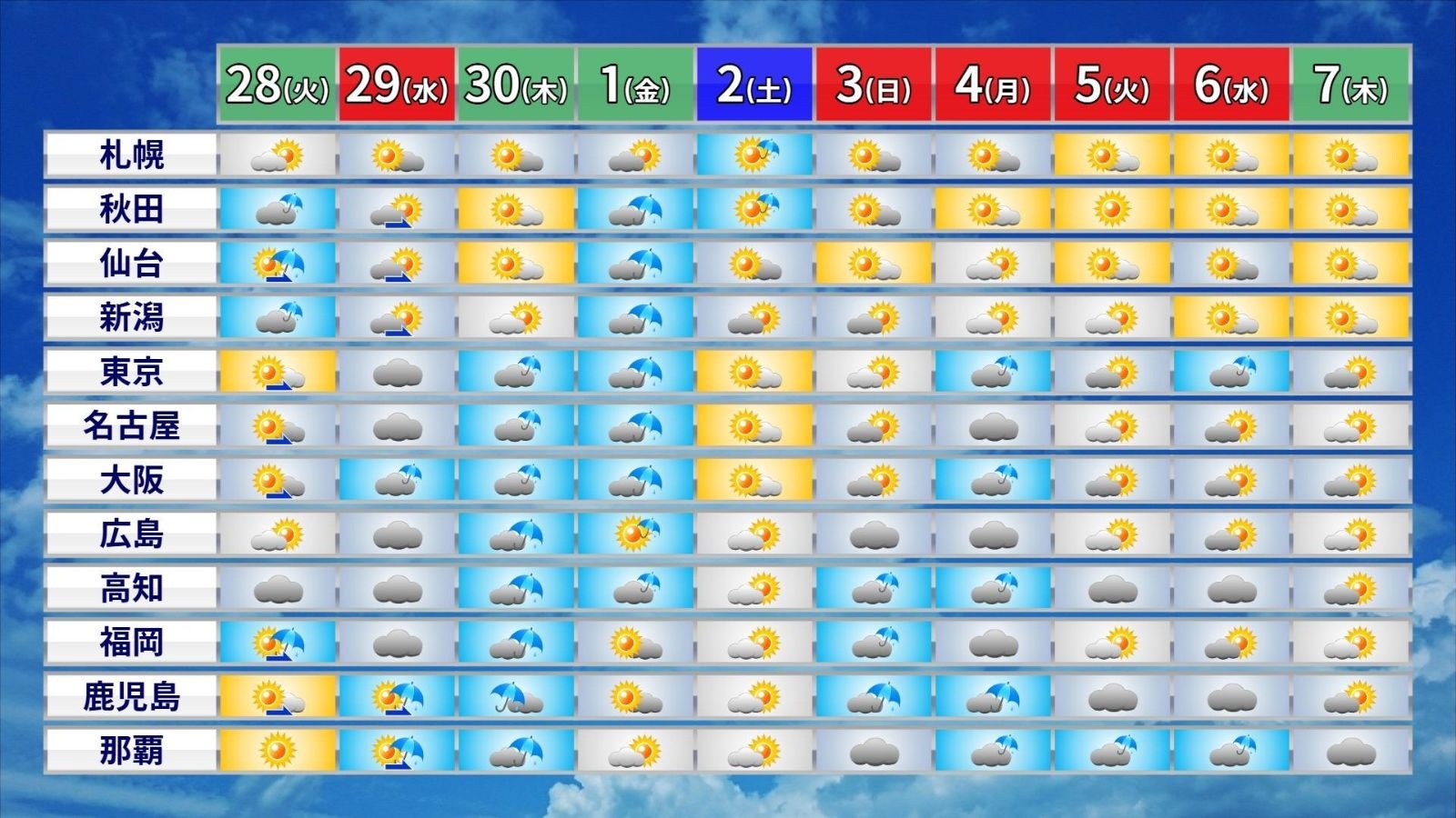 いよいよ、今年もゴールデンウィークが始まりつつあります。29日(昭和の日・水)から大型連休に入られる方が多いかもしれませんが、天気は日替わりとなりそうです