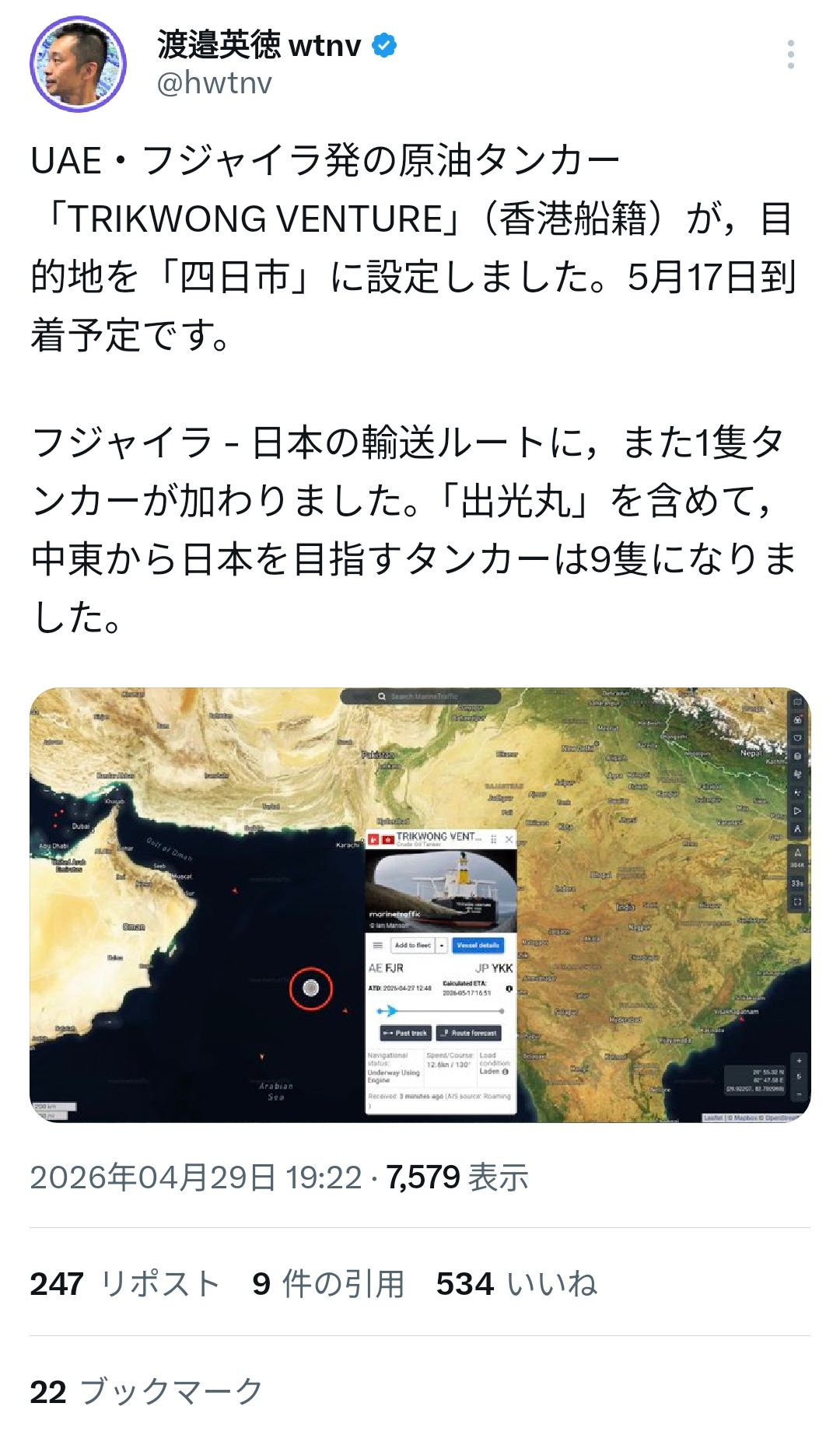 出光以外も通過で大敗北確定してしまうwwwwwwwwイラン大使館「出光の“日章丸”は日イ友好の象徴」高市らの集団に触れずXに2回投稿 [834922174]