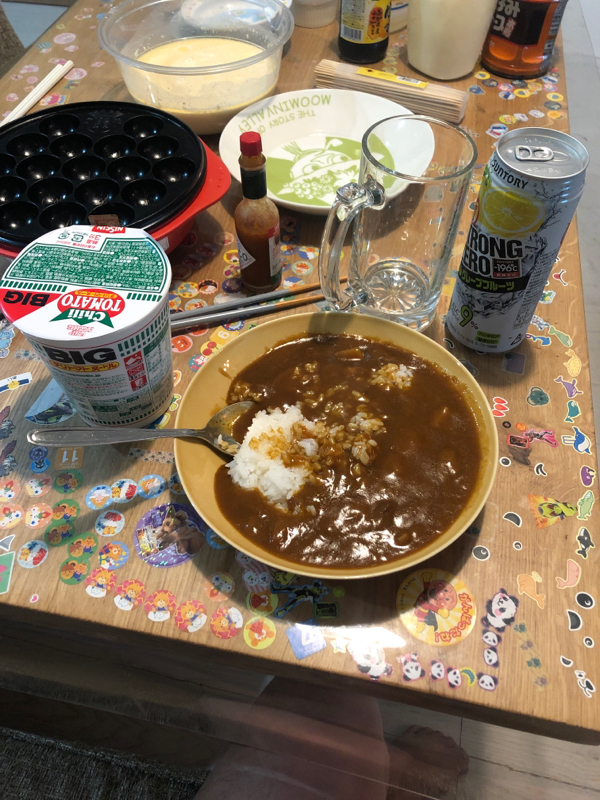 - 嫁おる前でレトルトカレーにカップ麺にストゼロは逆にクッソ贅沢やな