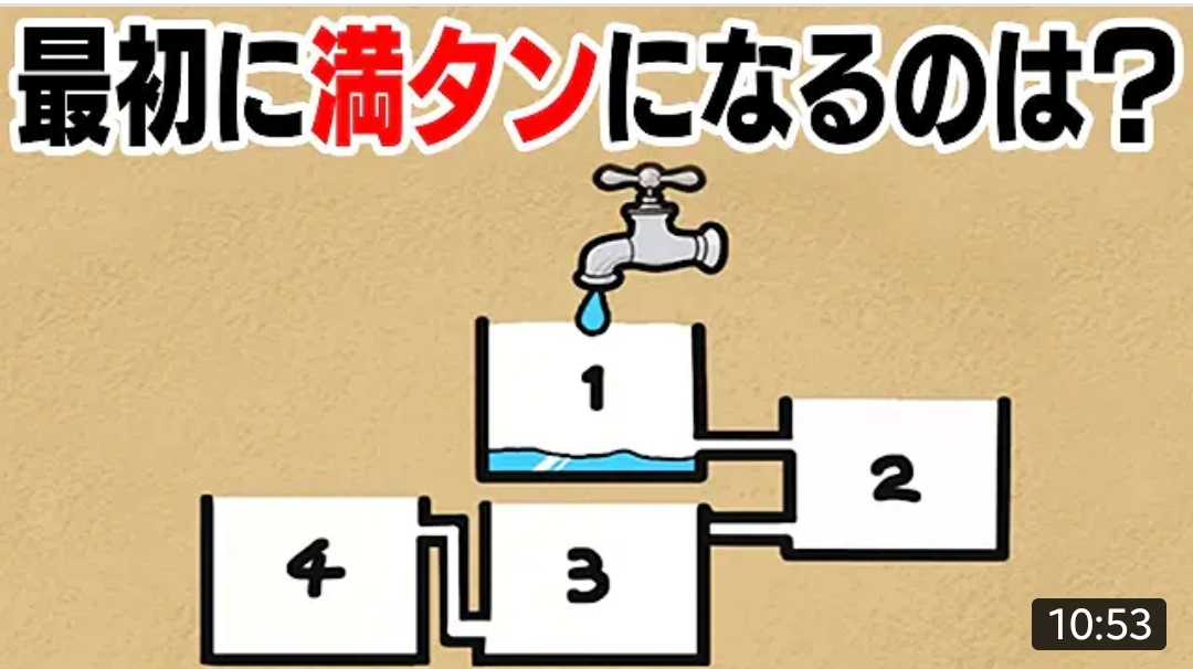 【問題】何番の容器が一番初めに水が溢れるでしょうか?