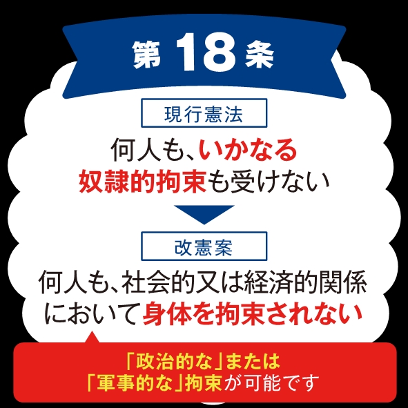 第18条、身体の拘束は精神科病院で認めるべきだろ。