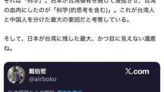 嫌儲 台湾史.jp、正論 「台湾人と中国人の最大の違いは『科学的思考』。これは日本が台湾統治で台湾に与えたものだ」【高市悲報】