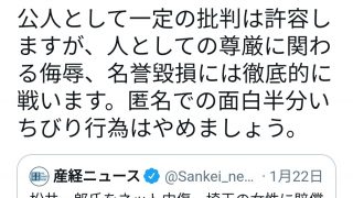 【維新】松井一郎「人としての尊厳に関わる侮辱、名誉毀損には徹底的に戦う。匿名での面白半分いちびり行為はやめろ!」