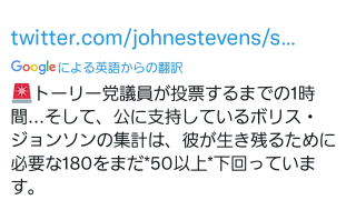 ボリス・ジョンソンさん、不信任か? 支持表明が50以上不足 投票まで残り1時間時点
