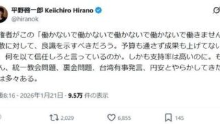 芸スポ 芥川賞作家、高市解散を「『働かないで働かないで働かないで働かないで働きません』解散」と投稿 (平野啓一郎氏)