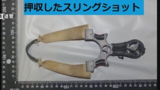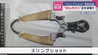 「カラスを撃つために使っている」スリングショットで鉄球発射。店舗の窓ガラスに命中させ、破壊した無職の男(33)が逮捕される