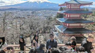 富士山+五重塔の映えスポット、桜まつり中止 観光公害「もう限界」
