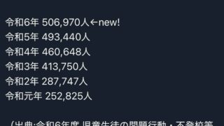 嫌儲 日本の小中学生、ただでさえ超少子化なのに早くも50万人も不登校者を出てしまう。